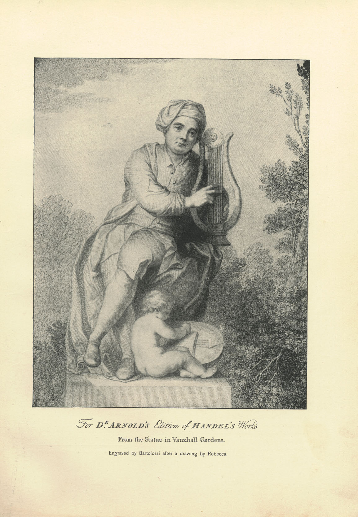 Engraving of Vauxhall Gardens Statue- 1901 print by the J. B. Millet Co.